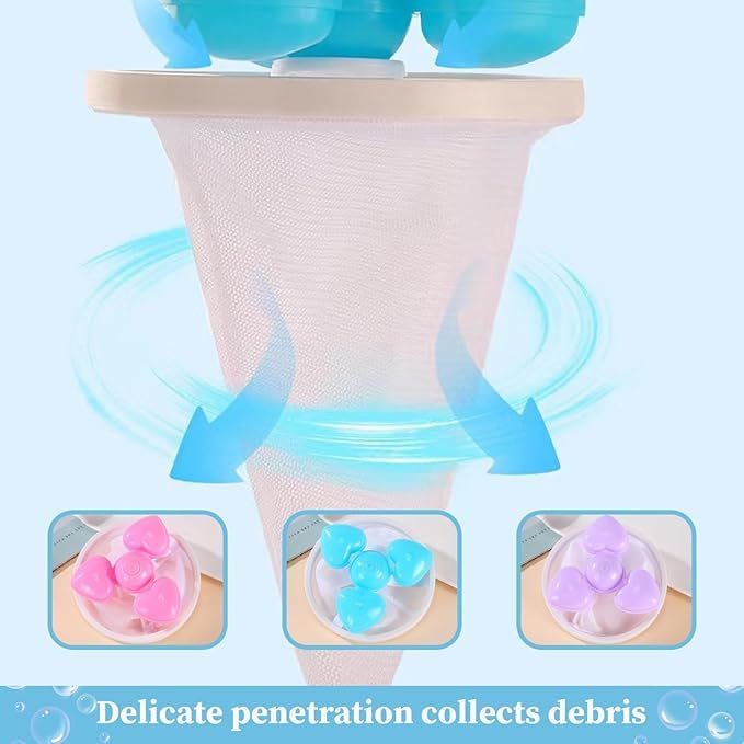 As the water flows and swirls, the floating catcher spins gracefully, creating a natural suction effect. This gentle movement draws in loose particles from all around the washer, trapping them safely inside its mesh bag.